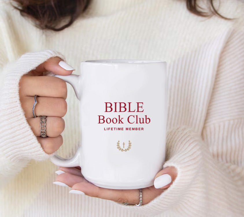Our classic Bible Book Club coffeehouse mugs make quiet time with God cozy and calm with your favorite beverage.